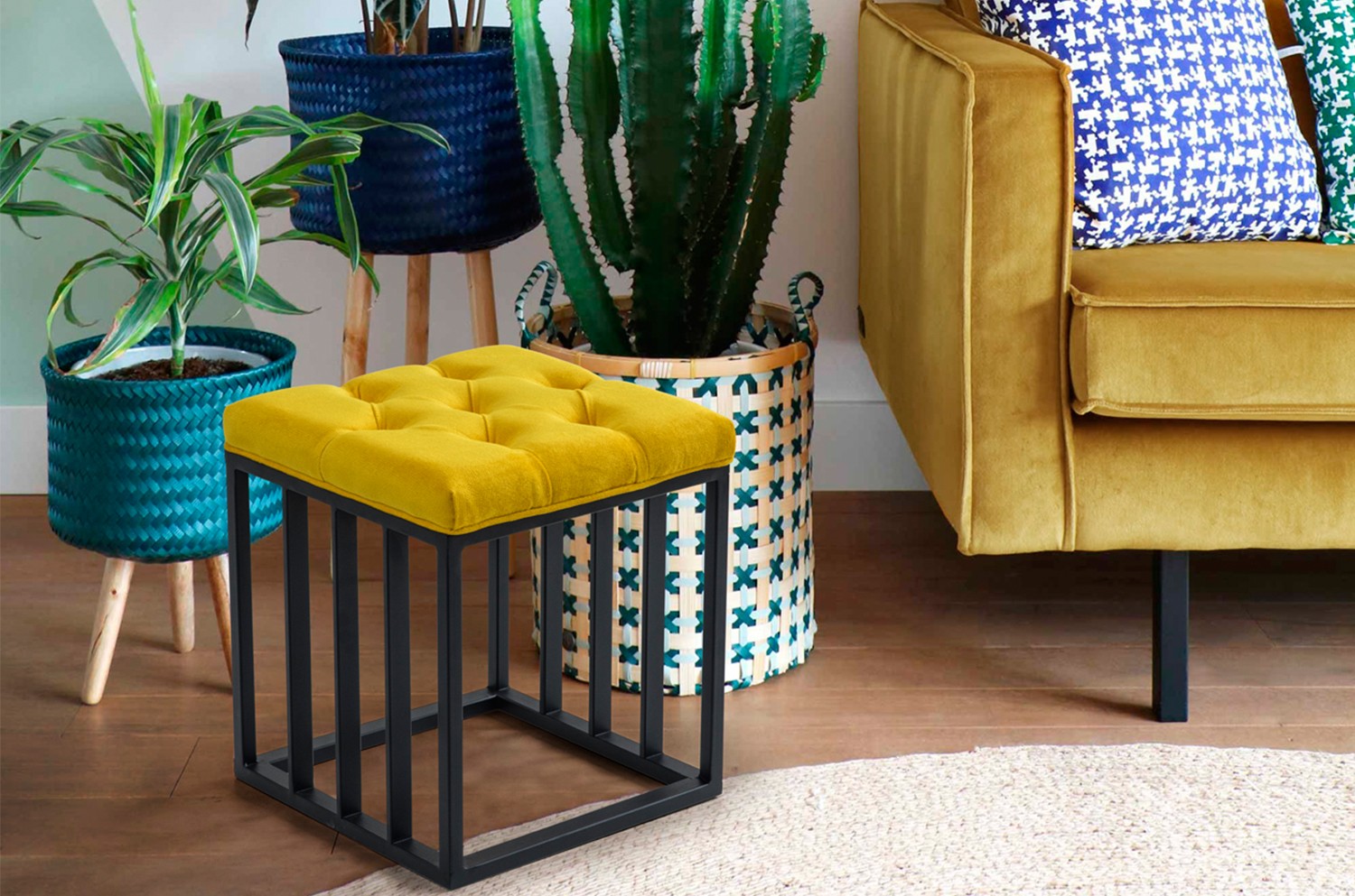 Palmira Metal Puf Sarı Siyah